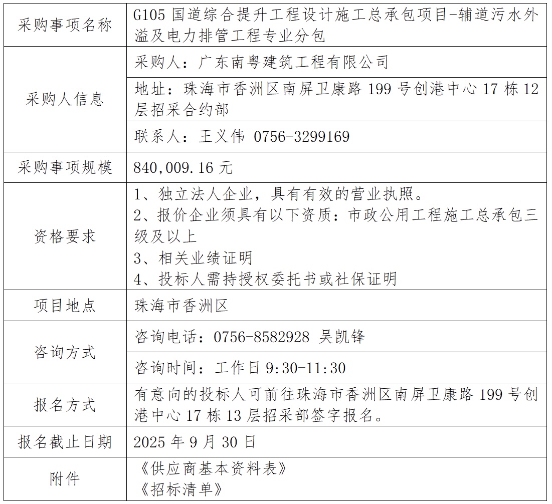 G105国道综合提升工程设计施工总承包项目-辅道污水外溢及电力排管工程专业分包