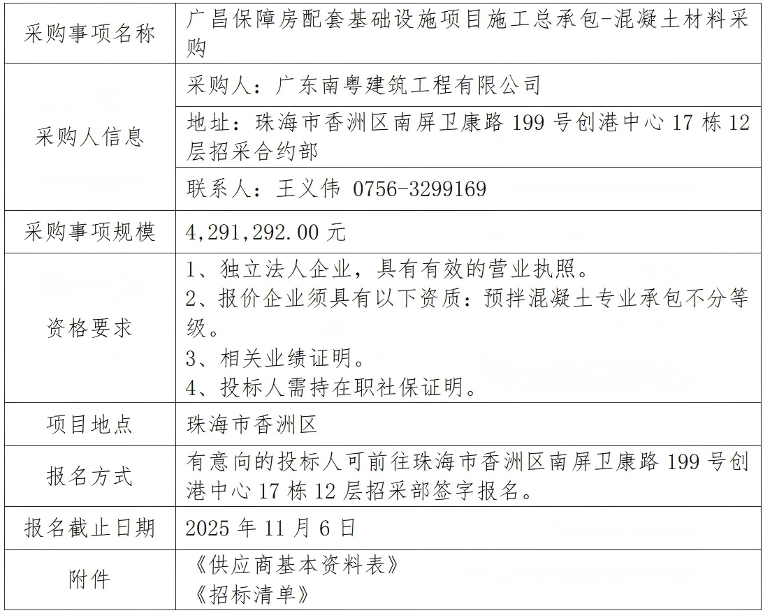 广昌保障房配套基础设施项目施工总承包-混凝土材料采购