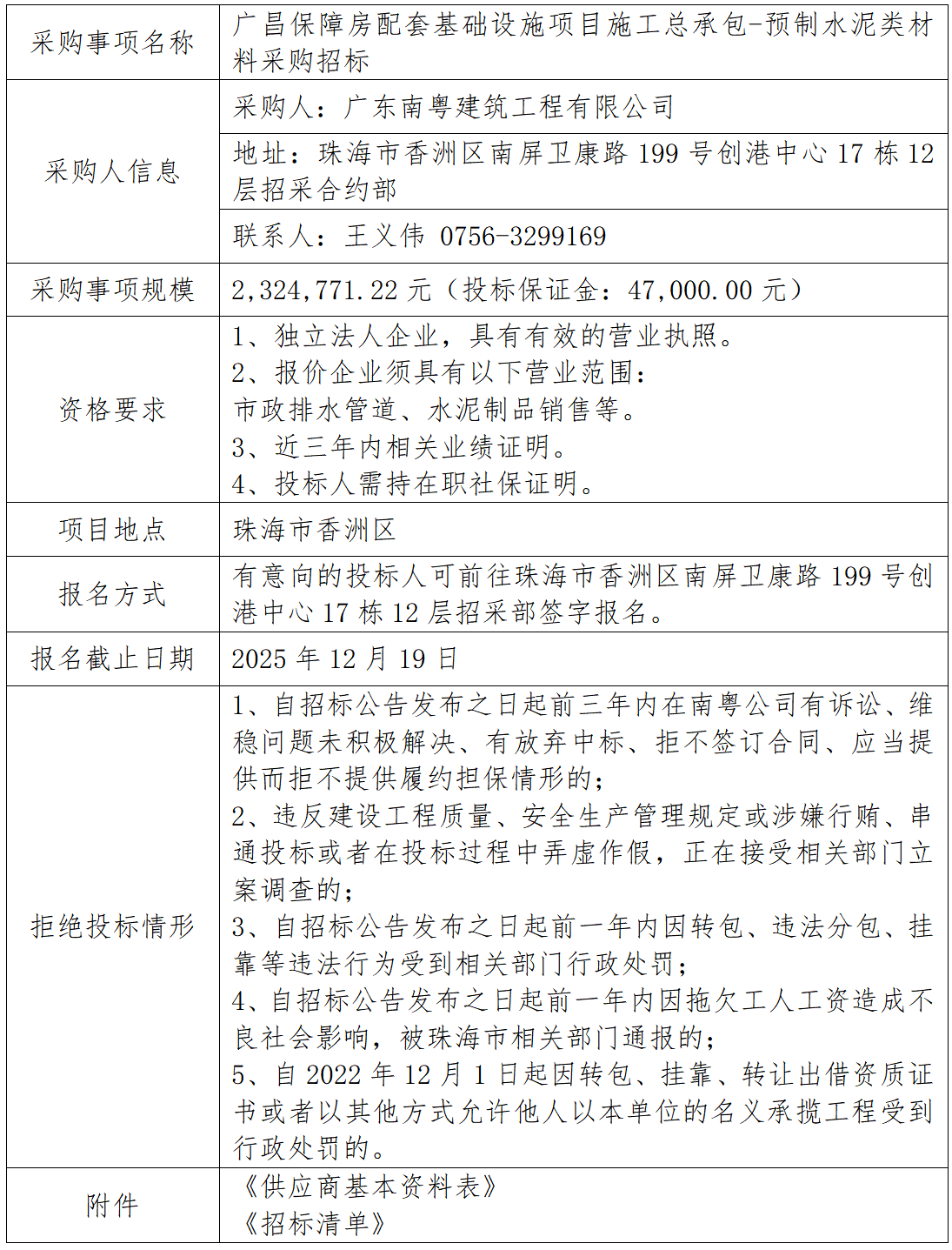 广昌保障房配套基础设施项目施工总承包-预制水泥类材料采购招标