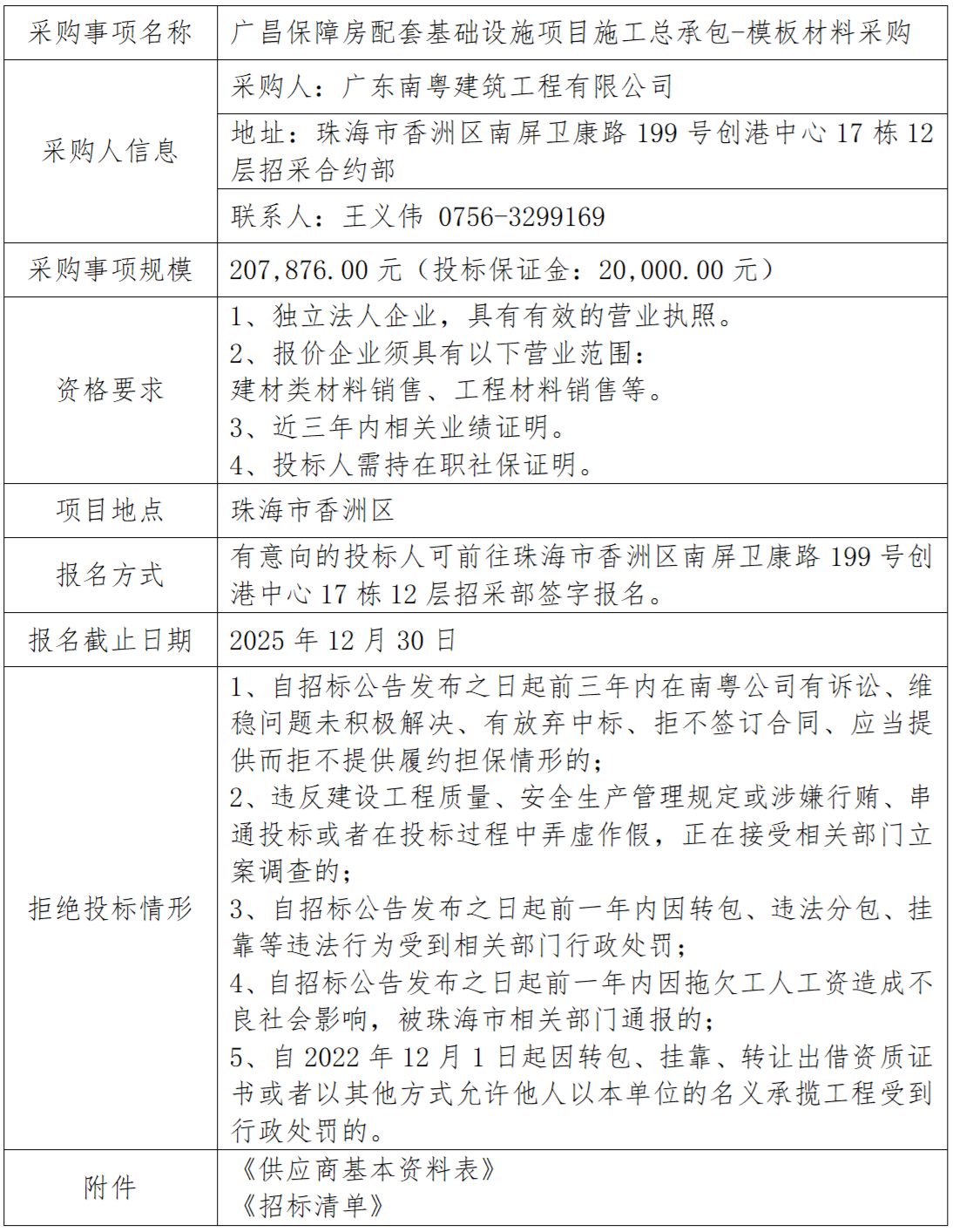 广昌保障房配套基础设施项目施工总承包-模板材料采购