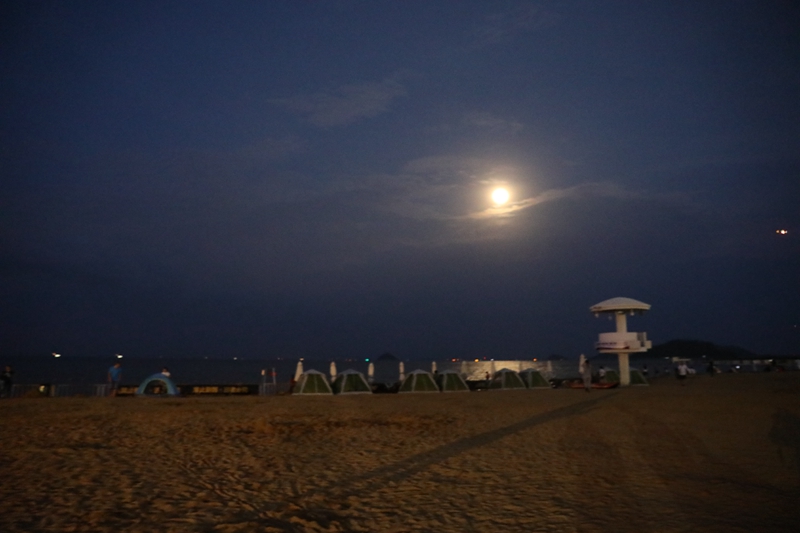 海上升明月,天涯共此时!很多家庭,情侣都选择在沙滩赏月,游客们带了各种小吃、水果、月饼,各色的灯笼等。作为三大沙滩的守护者,正方公共运营公司一直都把游客们的安全放在首位。三大沙滩都设置了不同的出入口,入口有安检门,像刀具,火机等都被列入管制物品行列,游客们必须从入口进,出口出,在香炉湾的石围栏前更是有我们的“小黄人”们值岗。在中秋月圆夜,小黄人们的辛勤值守再次创新高,继续保持着沙滩零事故的记录。