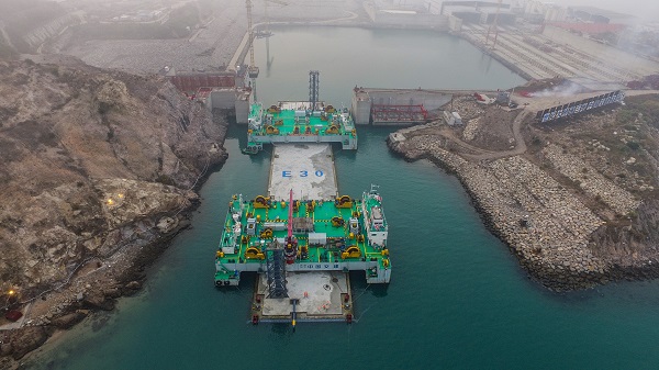 △港珠澳大桥修建过程启用世界最大起重船“振华30”