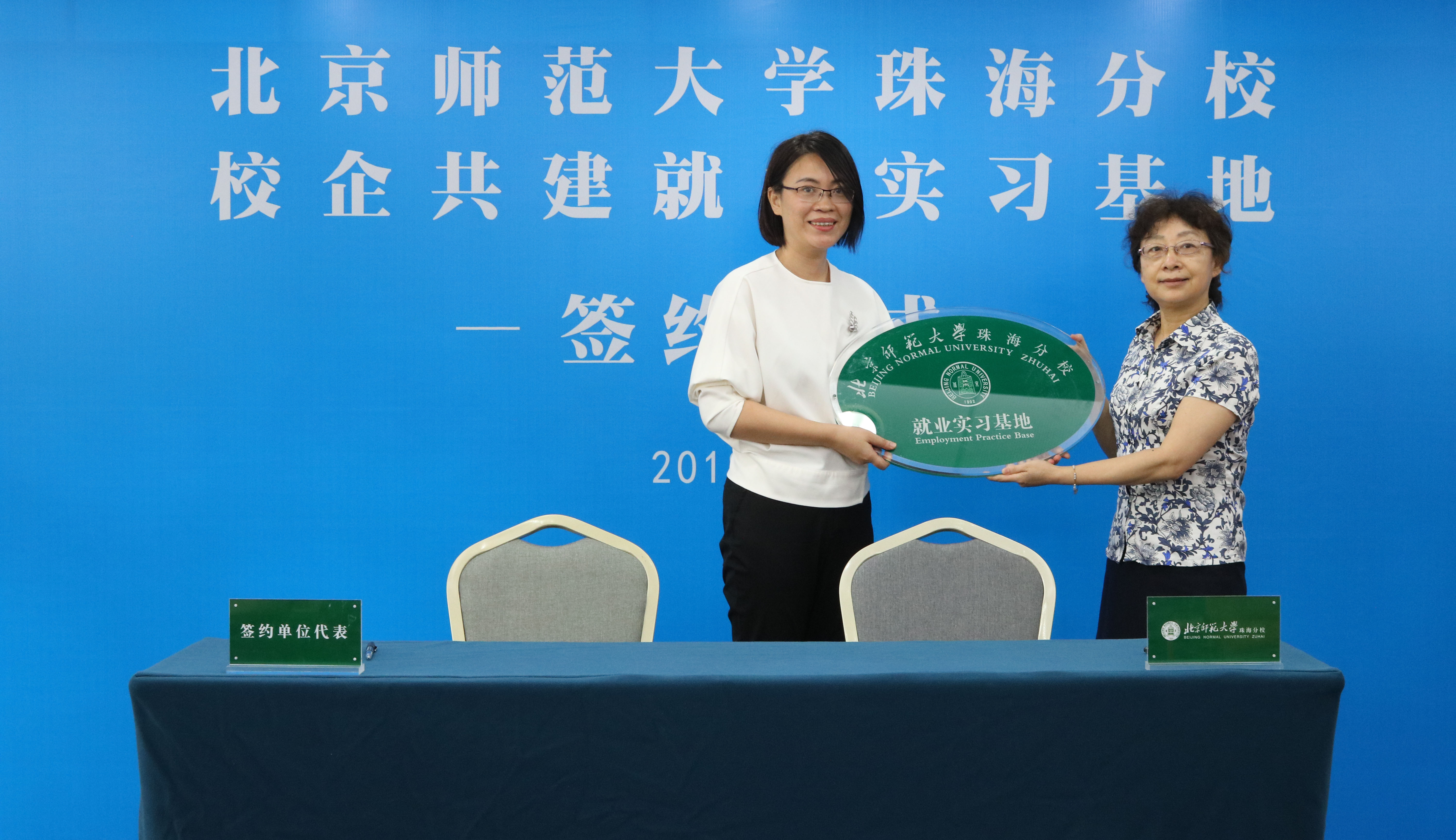 △北京师范大学珠海分校副校长虞立红代表学校与正方控股签署就业实习基地合作协议,并颁发“北京师范大学珠海分校就业实习基地”牌匾。