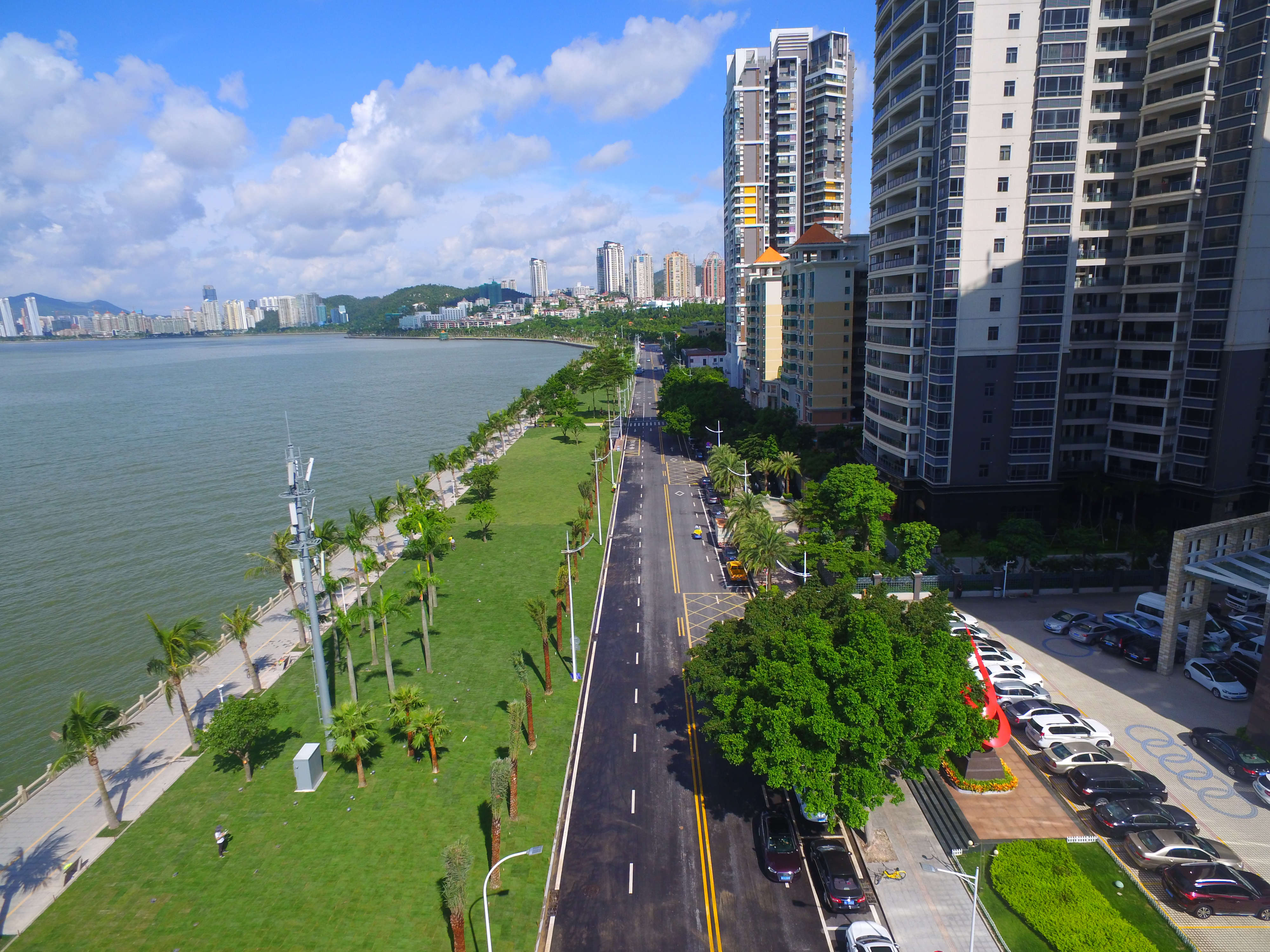 珠海正方市政建设有限公司总经理张有文表示,“此次情侣路升级改造,将原本比较密集的传统庭院式景观设计,改为了更为开阔通透的设计,将景观打通,使市民的空间使用率大为提升。改造后的情侣路绿地与海天连为一体,视觉效果更加开阔,也得到了市民与外国游客的认可,展现了海滨沿线的优美景观带。”