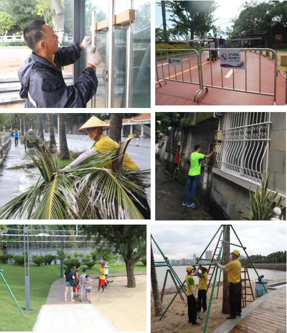 8月14日台风“贝碧嘉”防御工作正式启动,情侣路沿线沙滩、海天驿站等景点,沿线经营门店及辖区内所有社区公园全线关闭,辖区内所有停车场暂停对外开放。正方物业及时组织作业人员对情侣路沿线枯枝进行清理,加固沿海区域绿化乔木。正方投资开发有限公司组织人员对低洼及坡边租户进行疏散。