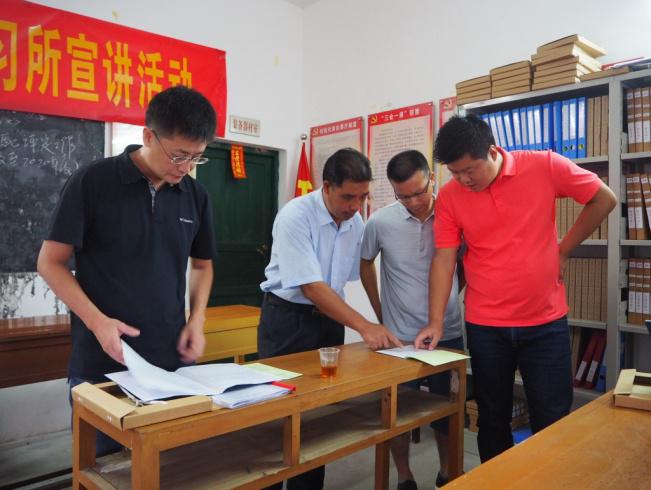 △唐亮总经理、陈歆副总经理前往村委会查看结对帮扶贫困户的帮扶记录