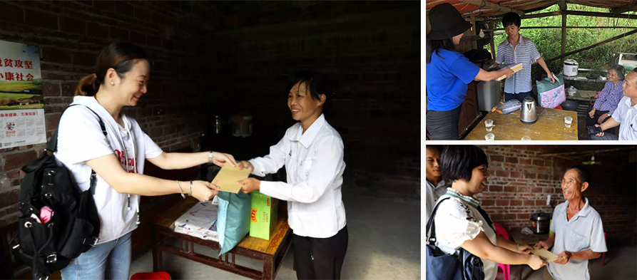 △扶贫小组成员为各自的帮扶对象送上慰问品与慰问金
