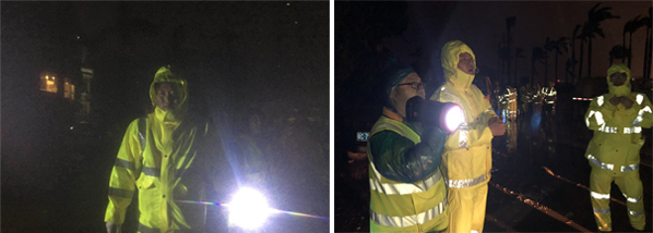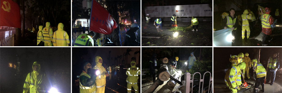16日晚,正方控股总经理唐亮带领各归责片区领导,分17组对各辖区开展全面巡查,清点台风受损情况,解决突发事故,做好各项防御工作。同时,由正方商贸、正方金投、正方城建板块共342人组成的应急队于16日19:00抵达情侣南路沿线及兴业路开展路障清理和应急救援工作,力争第一时间助力珠海道路解封。