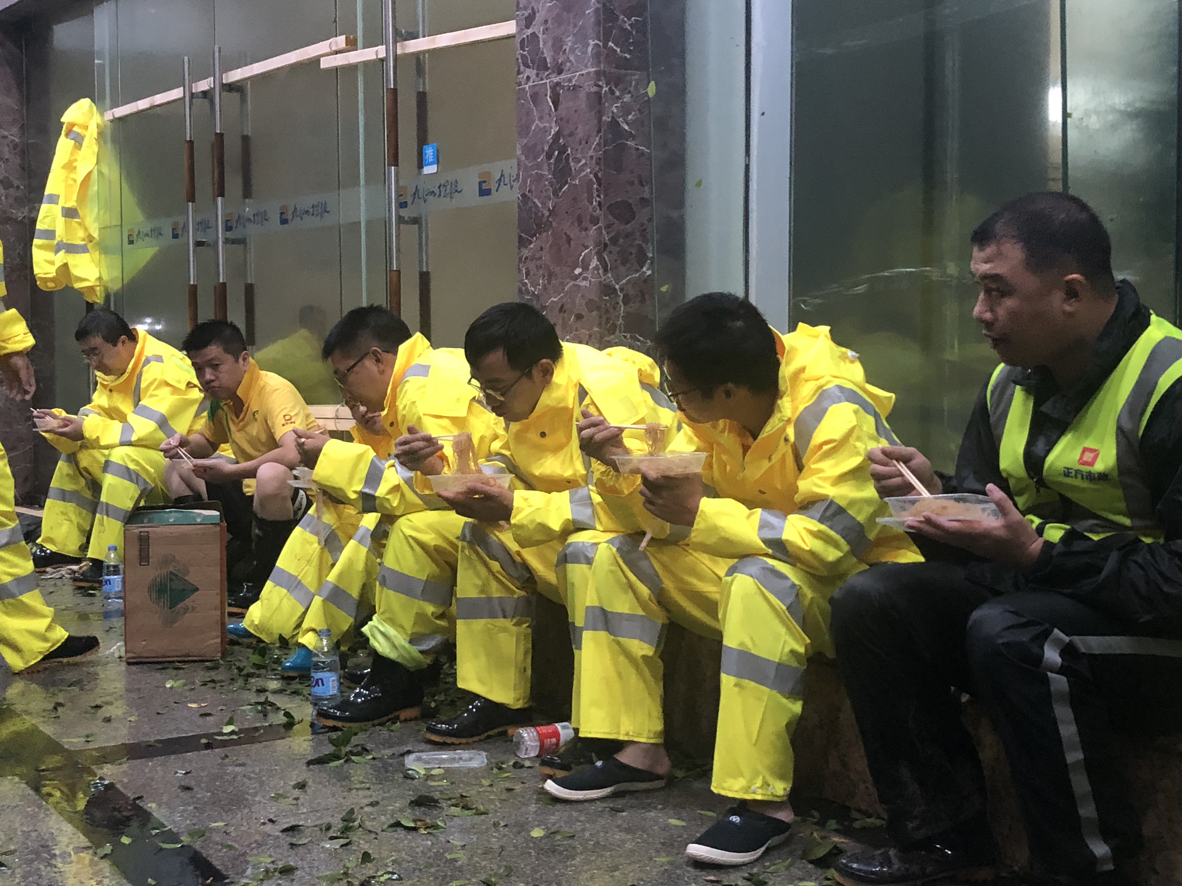 △忙于应急救援的员工 凌晨匆匆吃上晚餐
