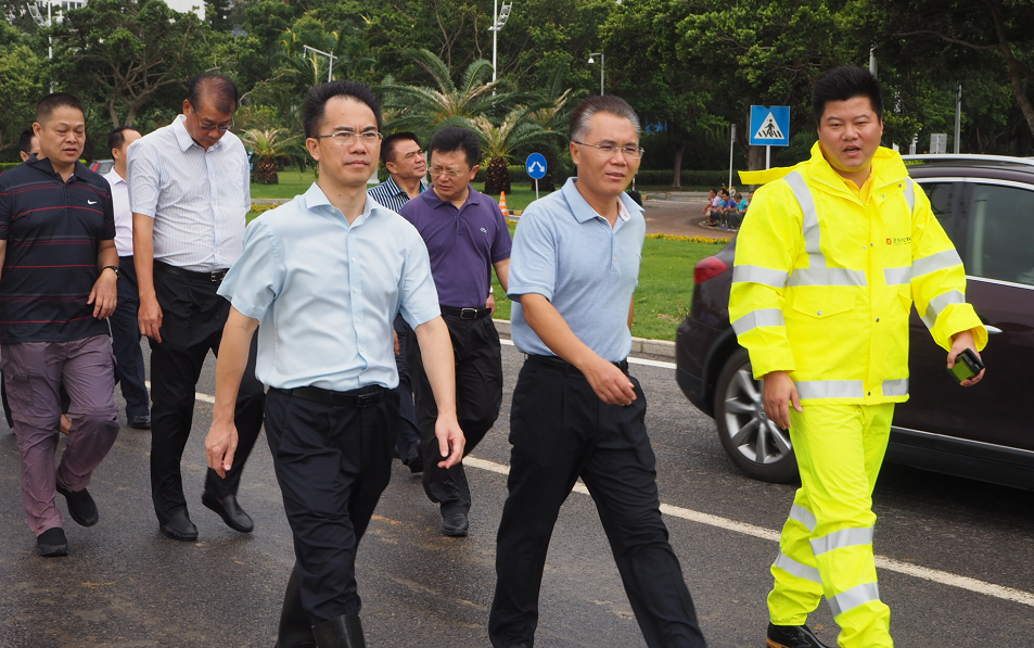 珠海香洲区委常委、副区长刘宏巡查情侣路灾后清障复产工作。