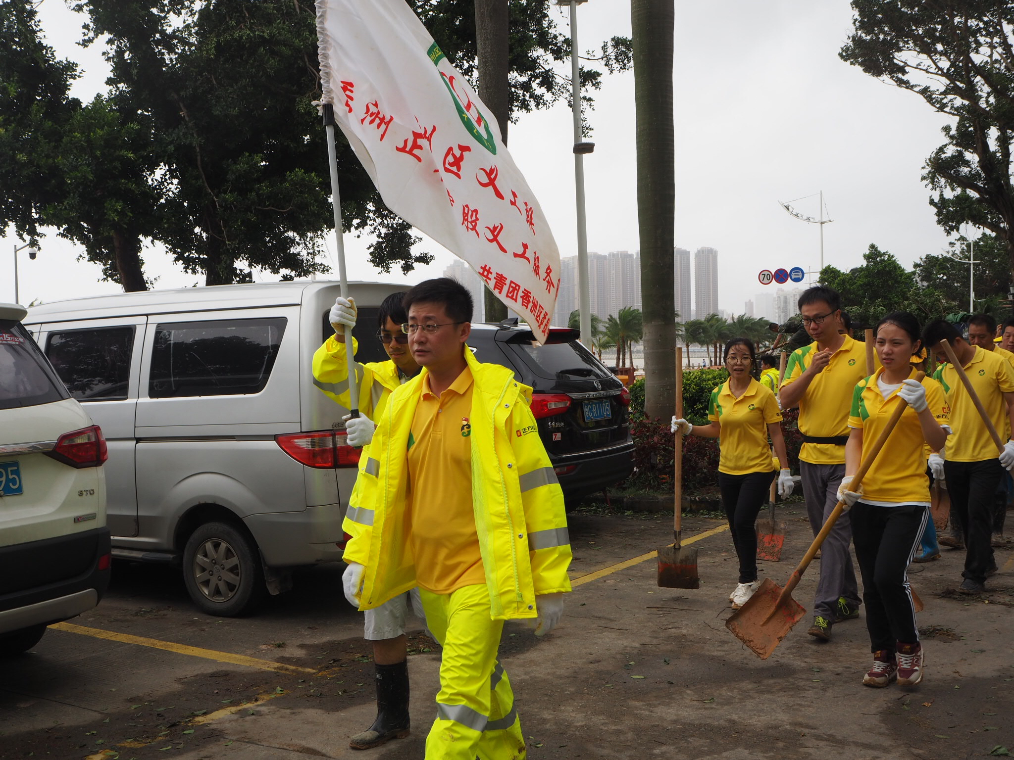 △香洲区义工联积极投入清障工作