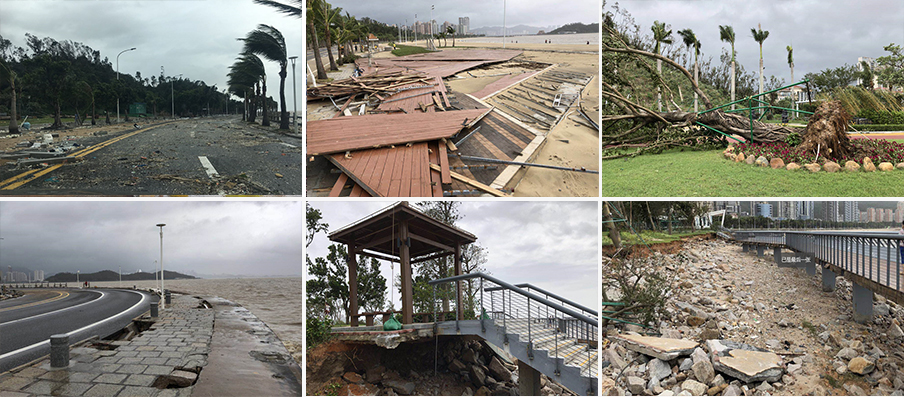△台风“山竹”给情侣路沿线、海天驿站等景点造成严重损害