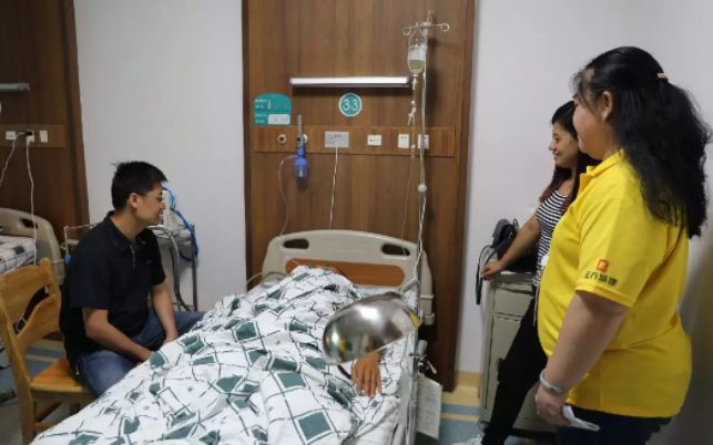 △正方控股副总经理陈歆、办公室副主任邓翠禅 慰问灾后复产受伤员工何鹏飞