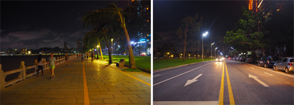 △夜幕降临,情侣路又恢复了昔日的宁静 饭后出现了散步的人群