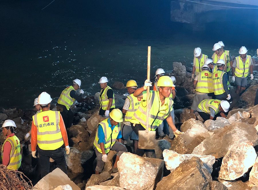 为了能够尽快修复珠海情侣路的美景,让交通恢复正常。16日晚,正方市政公司连夜组织300多人,冲在受损最为严重的情侣南路,开展路障清理和应急救援工作。经过22小时不分昼夜的救灾复产工作,情侣南路于17日下午恢复通车条件,向社会各界展现了“正方担当”。