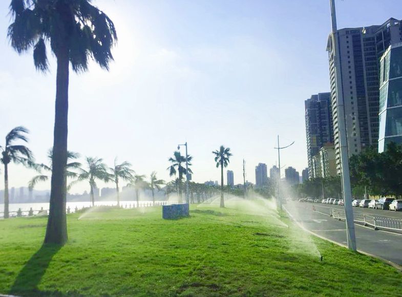 从防御台风、抢通道路,到修复绿化带,一个星期以来,张有文始终在工地一线,和团队在一起熬了数个通宵,“困了,就在路边的车上睡一觉。休息最长的时间,还是周四下午,因为中暑了,才得以休息一下”。路过“毫发无损”的绿化带时,草坪的自动喷灌系统在喷水,整齐划一,芳草萋萋。“不知道是不是我们齐心协力的缘故,我一看这个画面,就觉得很美。”