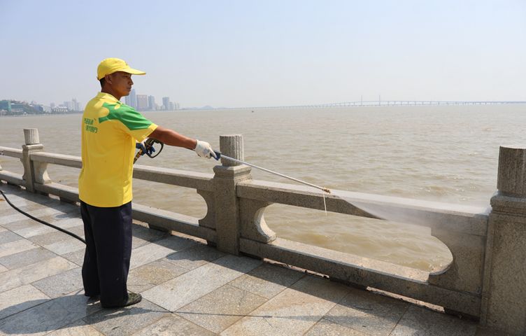 9月30日,珠海市香洲正方控股有限公司(以下简称:正方控股)对台风受损修复完工的该路段进行最后的清洗。崭新的情侣路,将以“最美”的姿态在国庆节与市民游客见面。