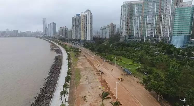 在台风“山竹”登陆时,原本剩余3.5公里的情侣南路改造提升工程已接近尾声。可是此次台风的破坏力之大,导致新改造的路段严重受损,合计损失草皮约八万平方米,土方约一万二千立方米,砂约两千立方米。原来绿油油的大草坪一夜之间变成了“黄土地”, 共计约3公里的绿化带需要重新铺设草皮。