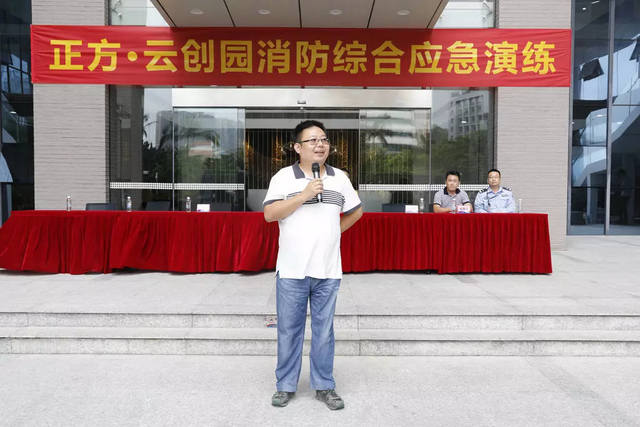 正方物业总经理助理钟少华在致辞中再三强调消防安全的重要意义,并表示:“今天举办消防演练,主要是为了培养大家的消防意识。消防即“防消结合”,火灾发生是非常致命的事情,希望大家能有安全意识与消防意识。如果火灾发生,但是如果大家能有消防安全意识及逃生技能,那么就能在危机中赢得一线生机。”