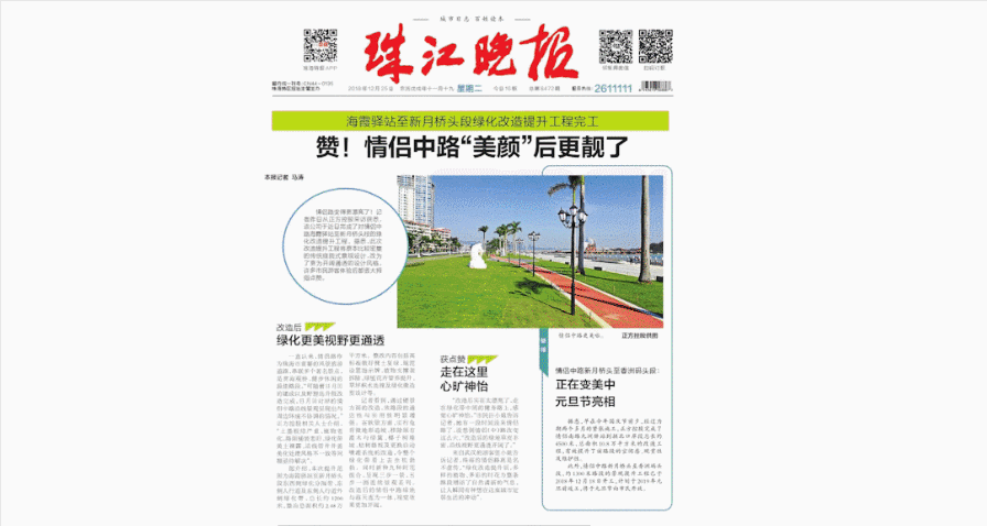 为积极响应珠海市府办对情侣路景观整治提升的工作要求,在香洲区城管局的统筹安排下,城管局各园林所与正方控股通力合作,于今年12月10日完成了对情侣中路海霞驿站至新月桥段的绿化改造提升工程。此次改造提升工程将原本比较密集的传统庭院式景观设计,改为了更为开阔通透的设计风格。景观打通后,市民的空间使用率大为提升。改造后的情侣路绿地与海天连为一体,视觉效果更加开阔,与周边环境相得益彰,展现了珠海海滨沿线的优美景观带。