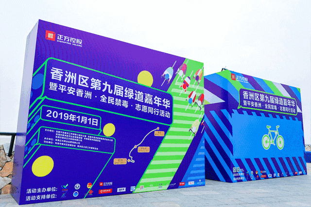 进一步展示珠海现代化宜居宜业宜游的大湾区魅力之城形象,体现香洲区城市建设成果,丰富市民节日生活,在2019年的第一天,“香洲区第九届绿道嘉年华暨平安香洲·全民禁毒·志愿同行活动”在城市客厅拉开帷幕,800人组成的“绿色大使”从箴言广场出发,以绿色生态的方式开启新年新征程。本届绿道嘉年华亮点纷呈,“绿道公益·环保骑行”、“平安香洲·全民禁毒·志愿同行”、“运动·互动体验”三大主题活动精彩绝伦,吸引了近上万市民参与,陪伴他们度过了一个欢乐元旦。