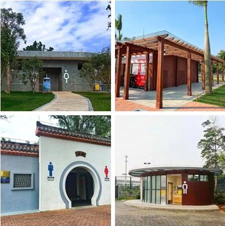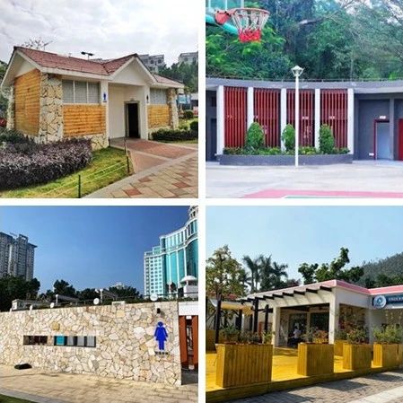 △“美丽公厕”一览(从左至右分别为:海天驿站公厕、海霞驿站公厕、梅华城市花园公厕、中广社区公园公厕)