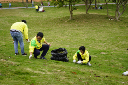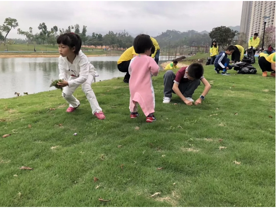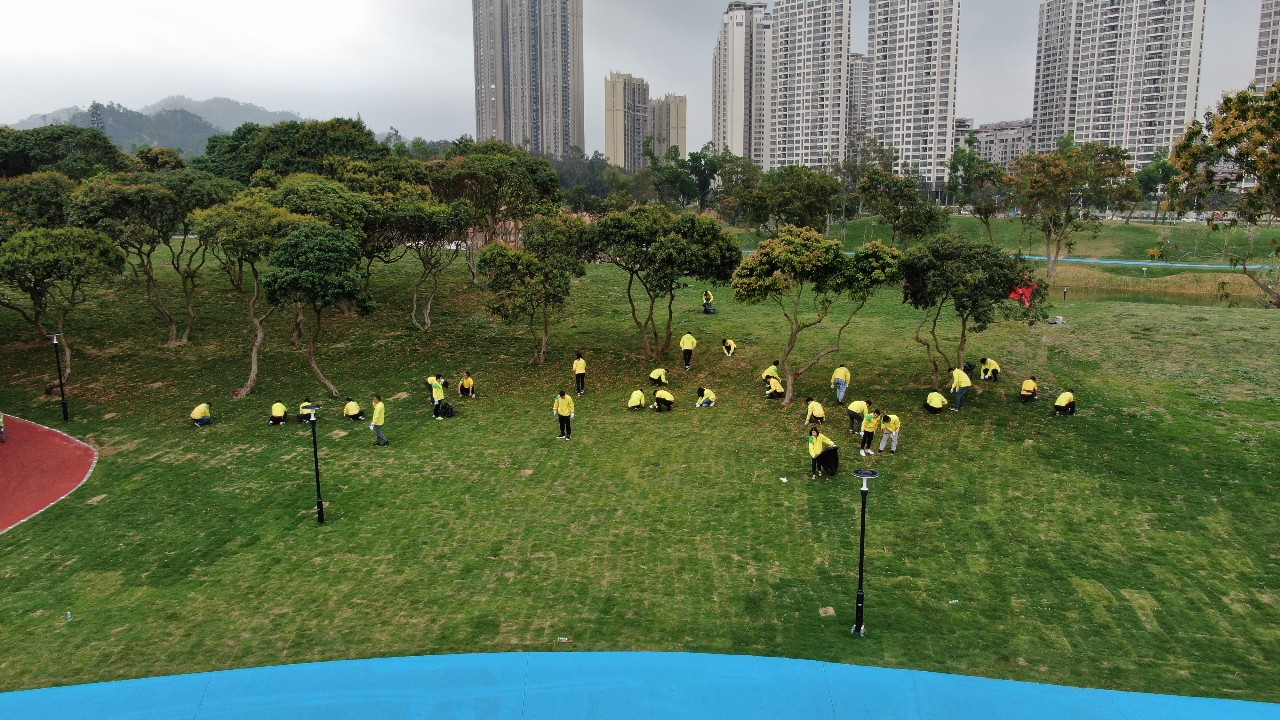 开始令下,各组队伍快速赶往自己负责的区域,组员们齐心协力、分工合作,有的在山坡上忙碌,有的在湖边仔细搜寻,有的在步道旁认真分辨,有的在树林中挥汗如雨。一时之间,香山湖公园里四处都是小黄人的身影,成了这满山遍野最美的风景。