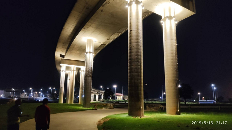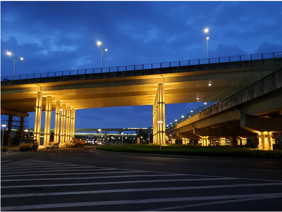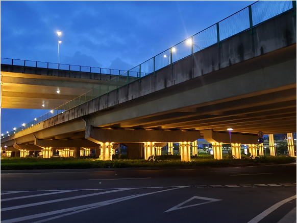 据珠海市香洲正方控股有限公司总经理助理张有文介绍,立交桥灯光亮化工程包括功能性景观照明和装饰性景观照明两部分;除人行通道区域外,其他区域都属于景观照明的范围。香洲正方通过在桥墩侧面设置暖色调壁灯,将桥身以及周围环境点亮,不仅实现了沿线夜景的可观性,点缀了珠海夜景,也方便了车辆驾以及行人通行,桥底的安全性也大为提高。