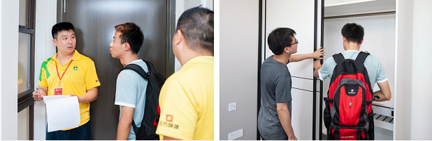 家的品质看在眼里才放心,为保证交给业主一个满意的家,在验房环节,每户业主家庭均有两位验房师陪同服务,及时解答和处理业主问题,保证业主满意,让每一位业主感受到蔚蓝公馆的满满诚意!