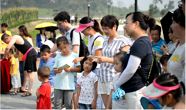 签到开始了,小朋友们跟着家长兴致勃勃地回到活动集合地签到、领取任务卡。