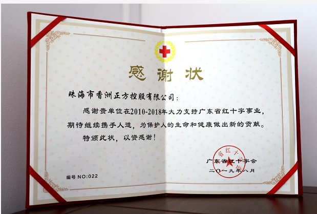 珠海市香洲正方控股有限公司总经理助理黄少兰代表公司出席会议。会议特设省领导致谢捐赠人环节,香洲正方因贡献突出,荣获多项荣誉。