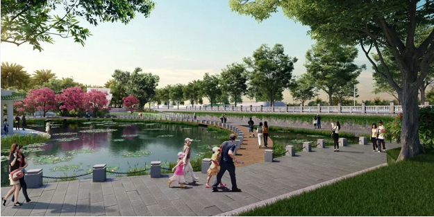 翠湖周围:将建具有文化底蕴的岭南风情园林小品建筑,翠湖中将饲养观赏鱼和习水性植物,营造出动物和植物互生互养的生态观赏水体。