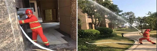 11月8日上午10时,54号厂房因不明火源引发着火,顿时浓烟四起,巡查人员发现情况后立即发出警报并拨打火警电话,利用所携带灭火器在现场展开灭火、同时监视火情蔓延情况。警报发出后,商户员工快速有序撤离到安全地带,南溪消防中队接到报警后也很快赶到现场灭火、搜救受伤者。随后,现场还组织了消防水带喷水演示、灭火器及防烟面罩使用培训,在场人员踊跃参与,体验了一次“身临其境”的灭火过程。