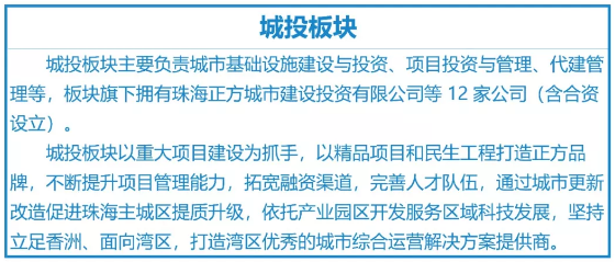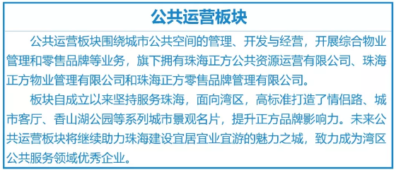 珠海市香洲正方控股有限公司(以下简称“公司”)成立于1996年,是香洲区属国有独资企业。公司秉承“让城市更美好”的企业使命,实施以公共运营业务为基础,城投业务和建设业务为支柱,商业管理业务与商贸业务为支撑配套的“1+2+2”战略布局,致力于成为优秀的城市综合运营服务商。