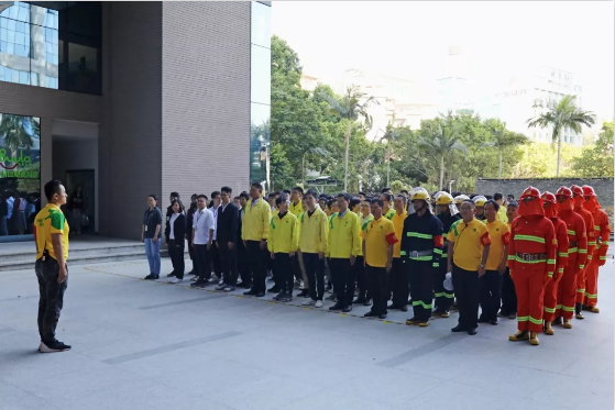 消防演练总指挥、珠海市香洲正方控股有限公司总经理助理、正方公共运营董事长黄华宁立即启动消防应急预案,疏散组按照方案组织大楼人员有序疏散,约600余名办公人员迅速有序地从消防通道撤离至大楼一层外集合。