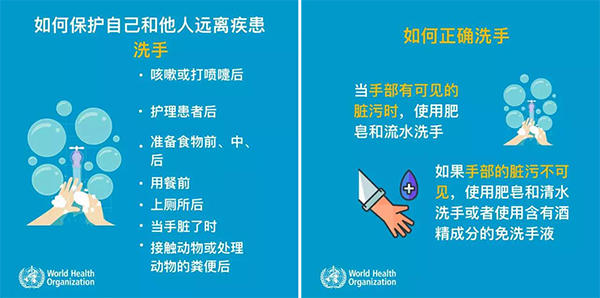 建议大家使用肥皂和流动的清水,搓手不少于 20 秒。如果出门在外不方便找到清水和肥皂,那么可以使用含有 70~80% 酒精的免洗洗手液。以下情况,都建议大家洗手: