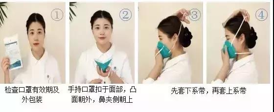 医用外科口罩有三层,从外到内分别是防水层、过滤层、舒适层。舒适层是一层无纺布,佩戴时白色的无纺布朝内,蓝色的防水层朝外,有金属片的一边朝上,不要戴反,橡皮筋挂上双耳后捏紧金属片和鼻子贴合,抚平两颊,使口罩和面部之间尽量不留缝隙。