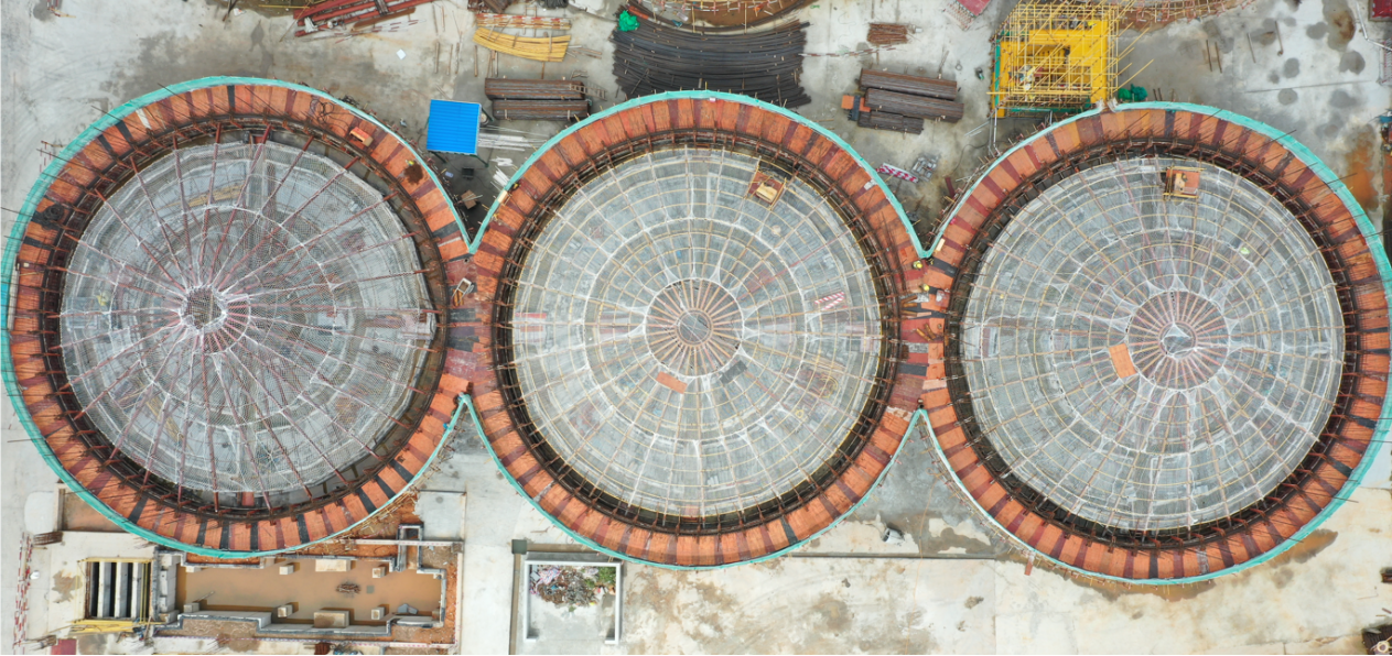 多联体浅圆仓滑模拖带仓顶锥形桁架一体滑行应用技术可应用于不同直径筒仓滑模及锥壳顶板施工,在香洲区新粮库项目浅圆仓工程中利用了多联体滑模、综合监测控制系统、仓顶钢桁架支座转换、浅圆仓滑模整体托带提升仓顶锥形桁架、吊筋承载节点、组合可调节长度拉杆等成套技术,高空施工安全保障、施工工效等方面取得良好效果,在有限的建筑面积和空间内获得最好的使用功能和最佳的投资回报,迎合了当代建筑的发展趋向,在浅圆仓施工中可大量推广。