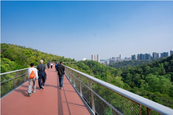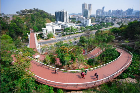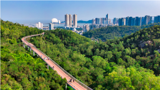 纵观珠海公园城市版图,香山云道重塑了城市形态,将分散的特色景点串联起来,提升了城市自然景观环境,营造出具有滨海特色和品质的滨海空间,打造慢行优先、绿色低碳、活力多元、智慧集约、景观优美的生态步道网络体系,结合城市更新,有效地盘活了城市中心区的土地资源,推动自然环境与城市结构进一步融合。