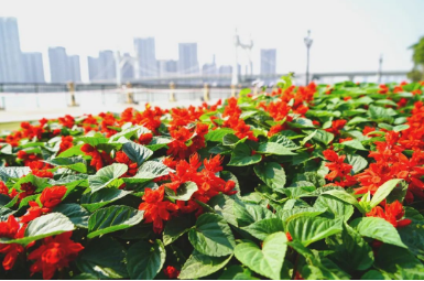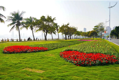 在情侣路上,10余处成片花海,红的、黄的、粉的……一片片、一簇簇各种颜色的时花,把情侣路点缀的多姿多彩。海天驿站、前山滨河公园、香山云道等,漫步其中,满眼芬芳,随时都能收获一整个春天的浪漫。