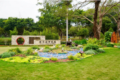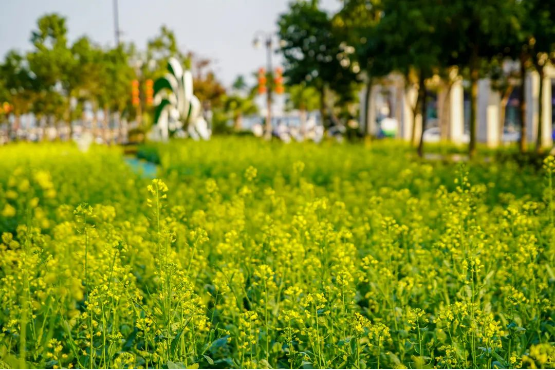 公园内还有约350平方米的波斯菊花海,走在公园内步道上,两旁是宫粉紫荆、黄槐……清风徐来,满是花香。梅华生菜菜园内已是春意盎然,绿油油一片,豌豆花、油菜花、番茄花……争相散发着春天的气息。