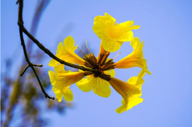 “枝头见花不见叶,一路金黄一路香。”描绘出黄花风铃木花满枝头,花团锦簇的场景,一抹亮眼的黄色点亮春天的面孔,奏响了迎接春天的乐曲。香山湖公园三期广场西侧,共有约500株黄花风铃木,目前已进入花期。盛花时,可欣赏到满山金黄,仿佛进入童话般的迷人世界。