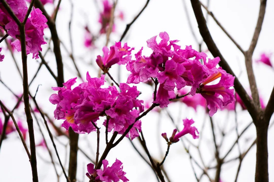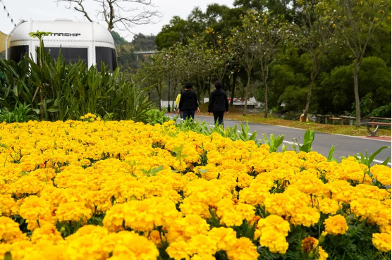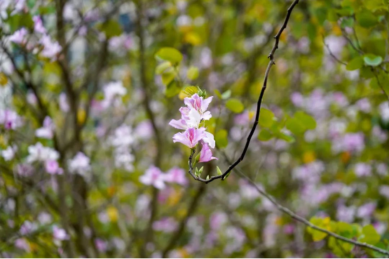 如紫色风铃的紫花风铃木,万紫千红的勒杜鹃,转角遇见黄金菊、万寿菊、石竹花、油菜花……春风吹过,迎来淡淡花香。