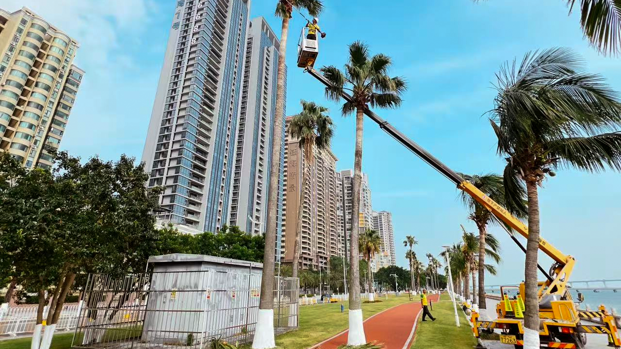 十五运会自行车(公路)赛的主赛道沿情侣路海岸线延伸。为以最美生态景观迎接赛事,正方集团精心妆点这条风景赛道,开展系统性绿化养护,完成海岸沿线50万㎡草坪施肥、1000㎡草坪修复与杂草防治,对300株大榕树、1800株棕榈树及6公里绿篱进行整形修剪,并加强椰子树椰心叶甲防治。更换时花约4725.5㎡,优化城市阳台、海天公园、海天驿站等重要节点的绿化小景,更换花箱绿植49个,全面提升景观品质与观赏性,勾勒出一条生机勃勃的滨海风景线。