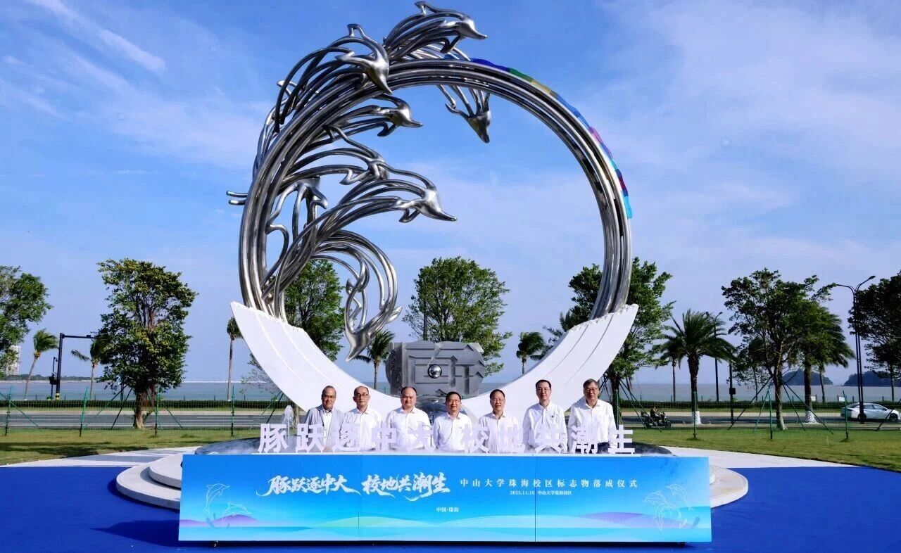 为铭记中山大学百年办学荣光,庆祝珠海校区设立25周年,近日,由珠海市委、市政府捐赠,正方集团代建的中山大学珠海校区标志性文化项目——“同源·中华白海豚”雕塑正式落成。