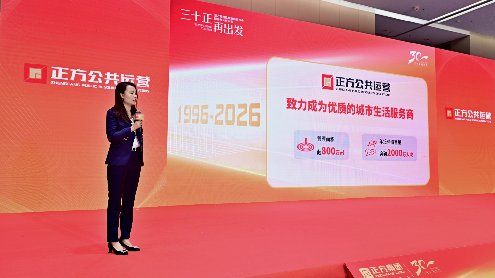 3月30日,珠海正方集团30周年品牌焕新发布会暨合作伙伴大会在珠海香洲创港中心圆满举行。活动以“三十正,再出发”为主题,回顾集团30年与城市共成长的发展历程,并正式发布全新企业愿景及“正好+”微信小程序一站式美好生活共创平台,标志着正方集团从“让城市更美好”向“让生活更美好”的全面升级。
